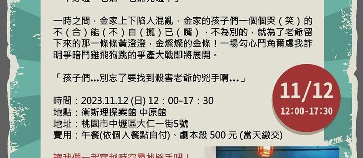 費用:午餐(依個人餐點自付)、劇本殺每人500元 (當天繳交)